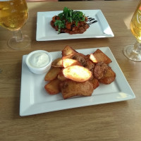 “ Food was good, the starters were potato skins and some kinda mozzarella dish. The potato skins were just the right side of crispy but also soft inside. I chose the garlic dip. My other half enjoyed her starter and it was all I could do to get a fork full of it. The mains were very good, although I didn't think my partner's looked up to much, she said it was absolutely lush. Staff were good, the waitress had a good personality and a sense of humour. We chose the Peroni, as I think that is all they had on tap although they had bottles of beer if you want something different. Our booking was at 19:30 on a Thursday, there was only one other couple in there eating. Two starters, two mains and 4 pints came to a reasonable 42. Will definitely be back. If anyone from the Bistro is reading this, I'd quite like to see another beer or two offered on tap and chips to be of the home cooked variety. Ta very much ”